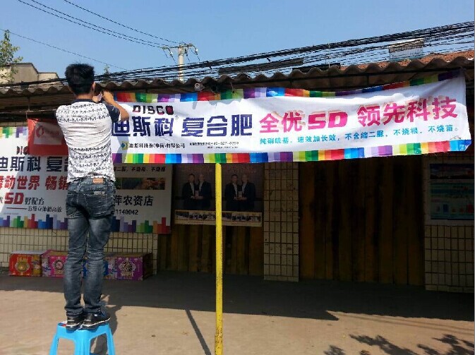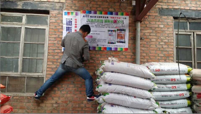 据悉,迪斯科化肥根据集团总部立体发展战略,近期制定了对重点市场“维护终端、服务农户”的工作,简称“6+1”“2+2”活动。除了给终端门店免费配置一把太阳伞、六把凳子外,着重对门店装潢布置,规整地张贴海报、装钉横幅和全力实施征集“科技示范田”、购肥有奖的两个活动,以形象升级、活动宣传、后期跟进的三维立体服务形式,从本质上进行终端维护和农户服务等工作。