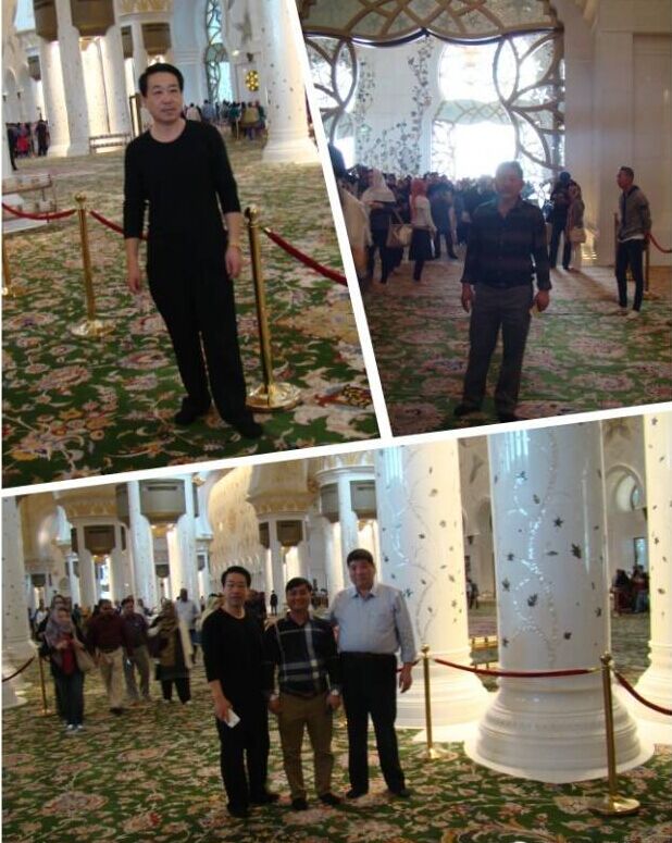 这个地毯可是世界上最大的手工编织地毯,宽达5,627平方米,重达47吨,造价580万美金,是由1200名伊朗工人采用38吨羊毛历时一年半编织而成。(再来几张老板们的地毯秀)