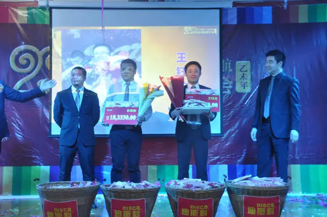 十年辉煌·再度起航 2015年迪斯科集团新春年会圆满落幕,祝愿今年宜昌基地顺利投产,明年产量销量翻番,后年黄金铺满整个集团!